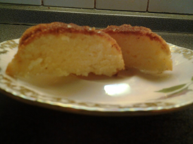Zapneme troubu na 180 °C a olejem ve spreji vystříkáme dortovou formu. Do šlehací mísy dáme vejce s cukrem a vyšleháme v hustou pěnu. Zatím si v mikrovlnce rozehřejeme máslo. Do něj pak přidáme tvaroh a metličkou vše rozmícháme. V misce smícháme mouku s práškem dopečiva a citrónovou kůrou. Snížíme chod stroje a do vyšlehané pěny přidáme tvarohovou směs a krátce zamícháme. Pak přidáme sypkou směs a vše opět krátce promícháme.